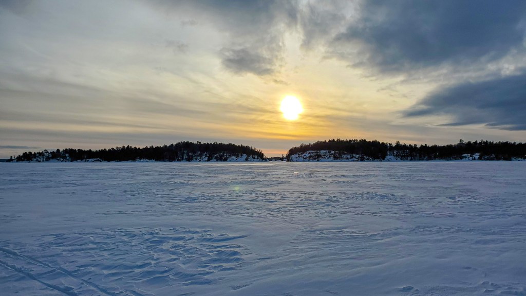 If you’re looking for a pretty awesome cross country ski after work I’d highly suggest skiing out to Hole in the Wall. The ski itself is only a 9.5km round trip from The George Hunt Memorial Boat Ramp. You have to either pay for parking or be a McDougall resident to use this parking. However, I’ve never received a ticket parking after 17:00 on a weeknight. Alternatively, you could park at the Salt Dock Boat Ramp and it is only a 10.5km round trip.