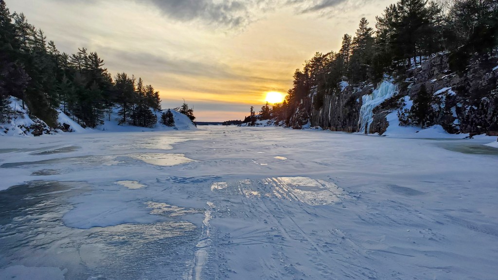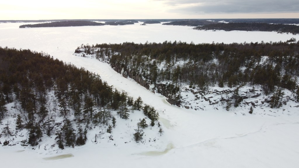 It was such a cool experience skiing through Hole in the Wall and skiing on Georgian Bay. My only disclaimer is that there is some current through Hole in the Wall so be very careful and go with friends. I had a rope and extra clothing just incase someone went in. Also I knew that people had biked there the week before.
