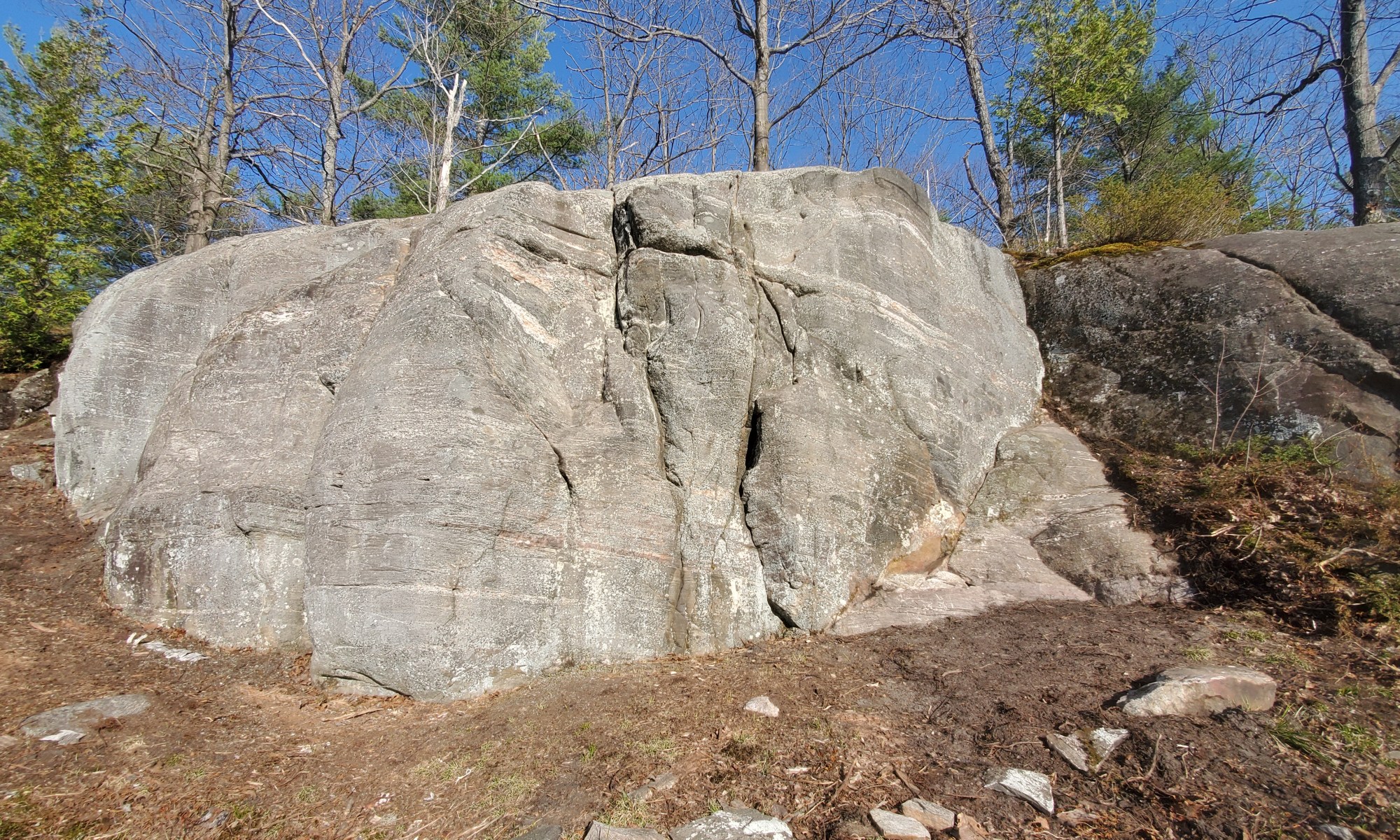 Please message me for the location of this boulder and I will gladly show you. It is on private property so I will not be publicly posting the location. It is within 10 minutes of Parry Sound and a 500 meter hike. The trail was not made by climbers.